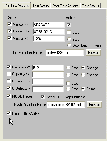 - Record Mode or Log Page data – all Mode and/or Log page data