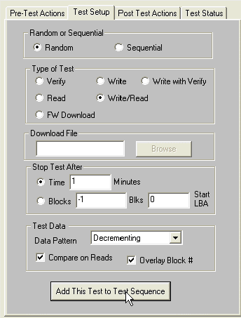 - Data Pattern - a pull-down list of data patterns is available to choose